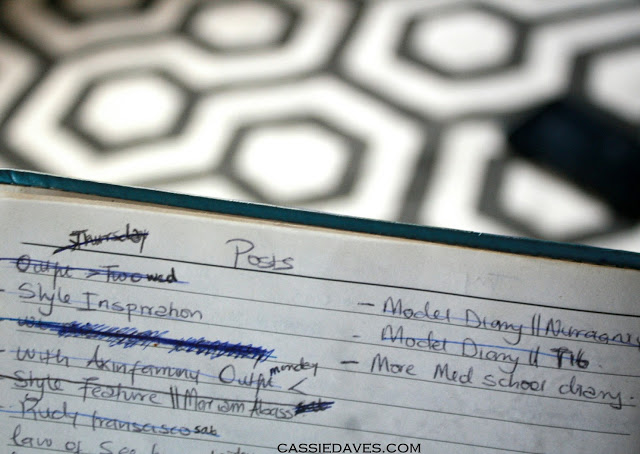 Not only does it help you have ideas to develop on later, it also gives you a visual of what needs to be done, prioritize and stay organized. Even if I don’t have my blog book with me, I always jot down in the note pad on my phone and transfer/try to make sense of it all later. I have posts to write and even ‘outfits to shoot’ written somewhere in my diary.