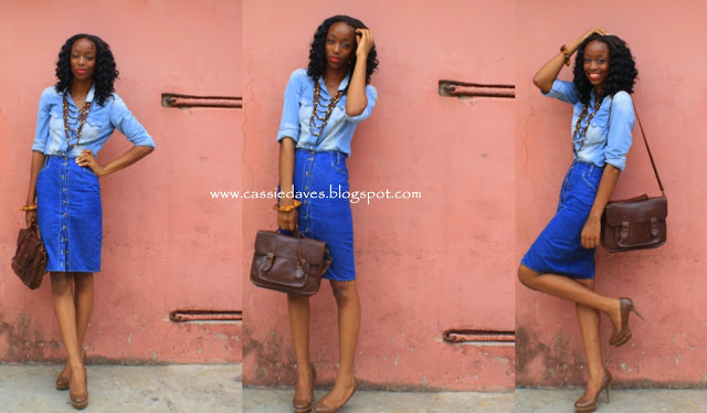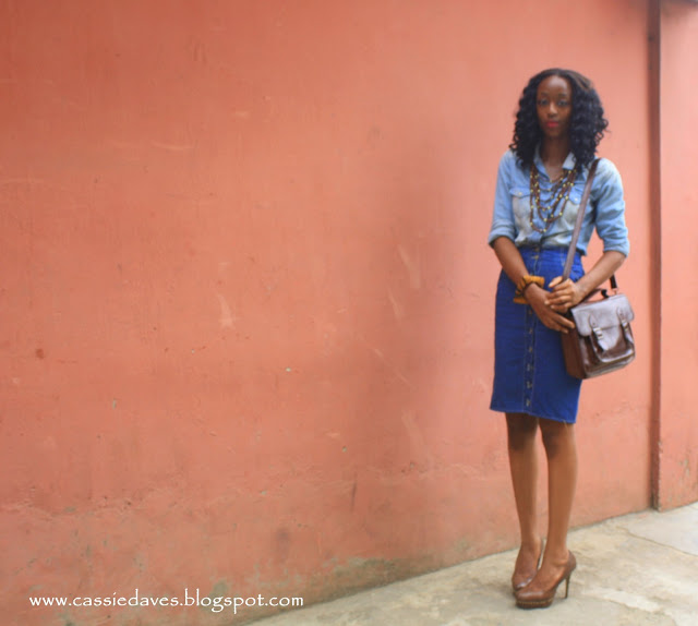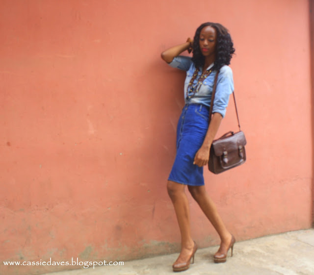 This denim skirt was the missing puzzle to completing my shala monroque inspired look. The Skirt was actually longer than this but i had it cut and it was ready to be rocked